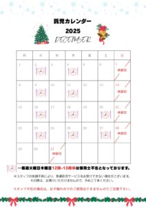 12月保育日程のお知らせ