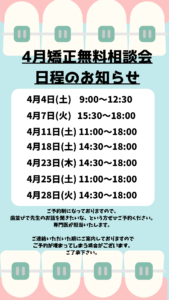4月無料矯正相談のお知らせ